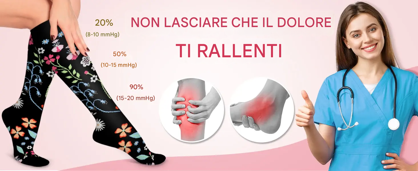 Il design floreale aggiunge un tocco femminile, mentre la compressione graduata aiuta la circolazione.